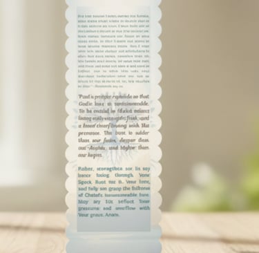 This beautifully designed bookmark features Paul’s prayer from Ephesians 3:14–19, reminding us of the immeasurable love of Christ. With radiant light and the symbol of a rooted tree, it reflects strength, faith, and the fullness of God’s presence. Perfect for Bible study, gifting, or daily encouragement, this bookmark is crafted to guide your heart and shine His Word in every moment.